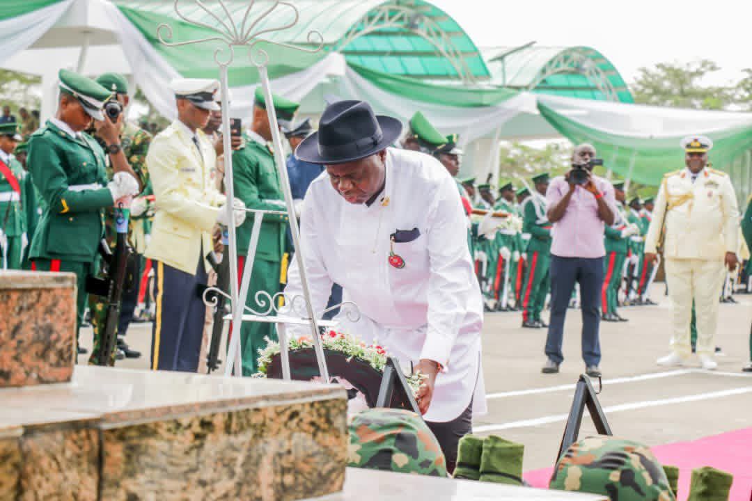 The governor later led other dignitaries to lay wreaths at the cenotaph in honour of fallen heroes who paid the supreme price in the service of the nation.