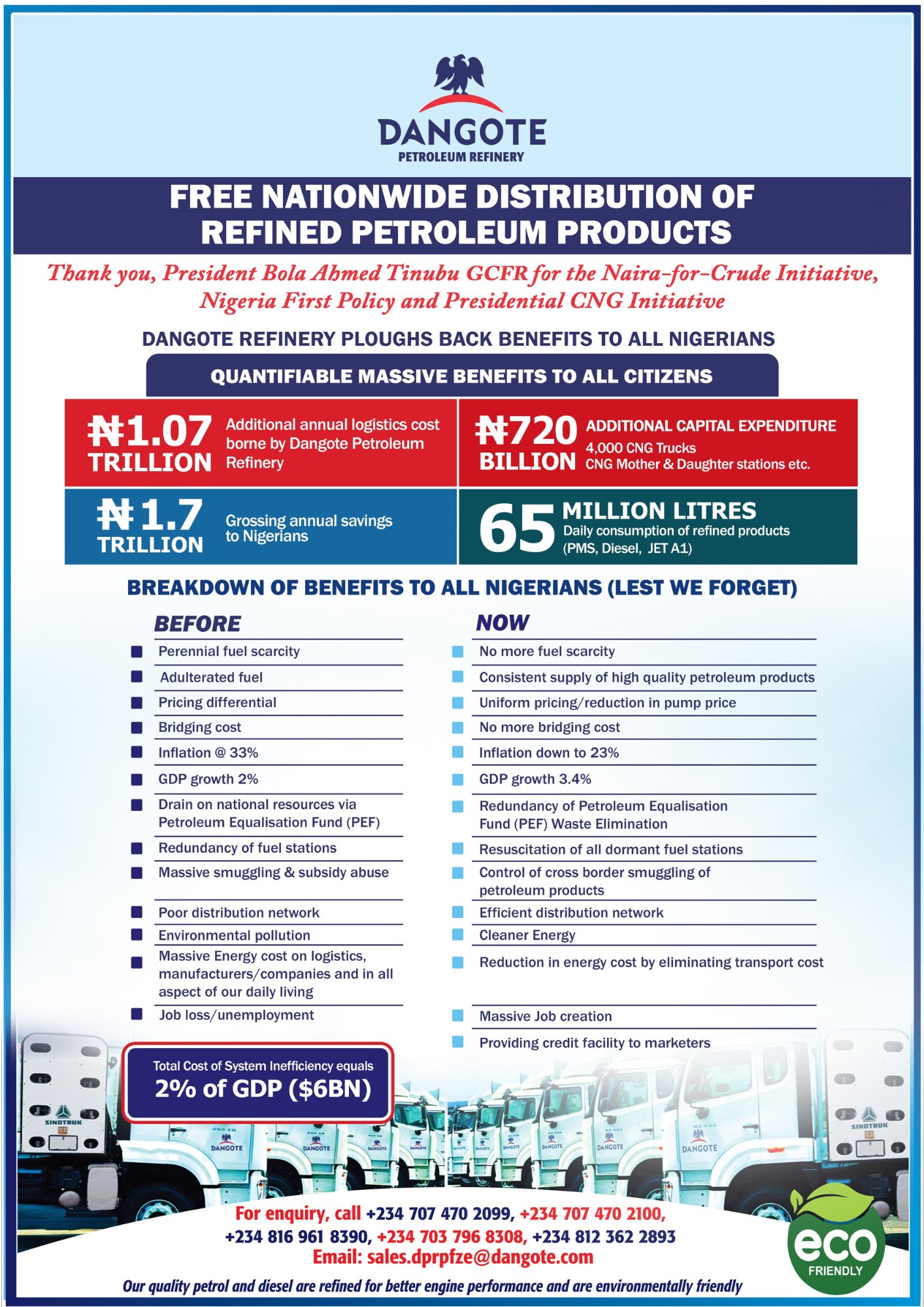 “This bold step will see the privately-owned refinery absorb over N1.07tn annually in fuel distribution costs.