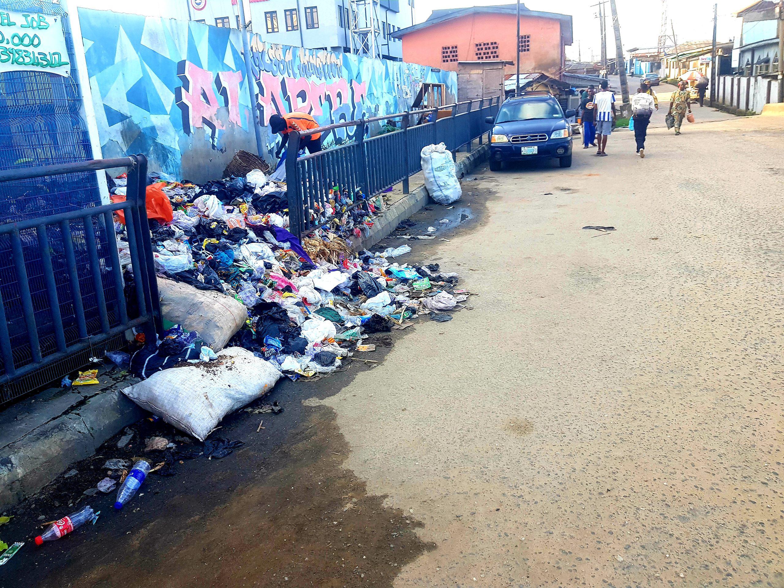 Ago Palace Way, a densely populated residential and commercial artery continues to witness roadside dumping despite sanitation enforcement measures.