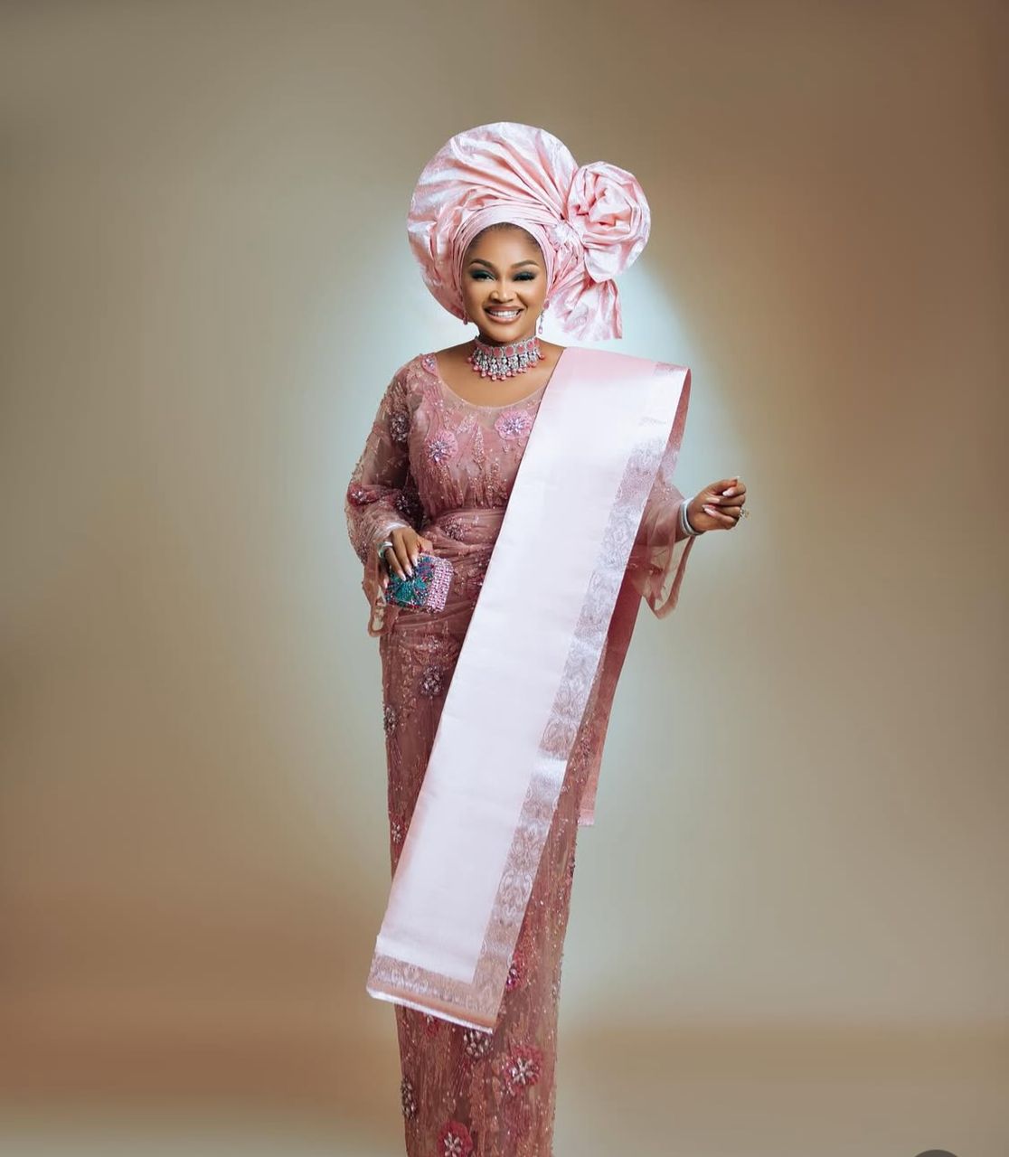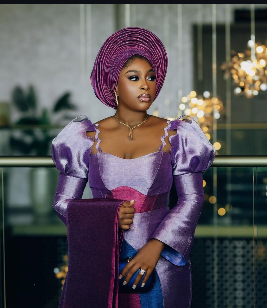 The gele has entered its soft era. We’re seeing sleeker, more sculptural styles less bulk, more finesse. Metallic finishes, subtle shimmer, or even bedazzled versions are trending. For those skipping the traditional wrap, pre-tied geles are coming in clutch (and still bringing the drama).