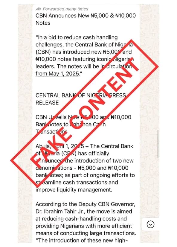 The Central Bank of Nigeria has dismissed claims regarding the launch of new N5,000 and N10,000 banknotes, labeling the reports as untrue.