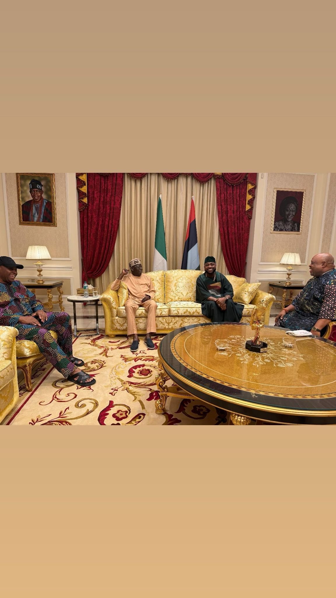 President Bola Tinubu on Tuesday hosted the Osun State Governor Ademola Adeleke, along with Chief Adedeji Adeleke and his son, Afrobeats star David Adeleke, popularly known as Davido, at his Lagos residence.