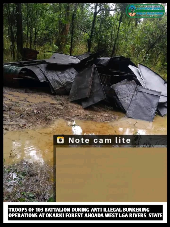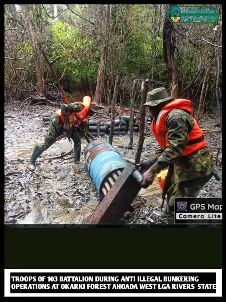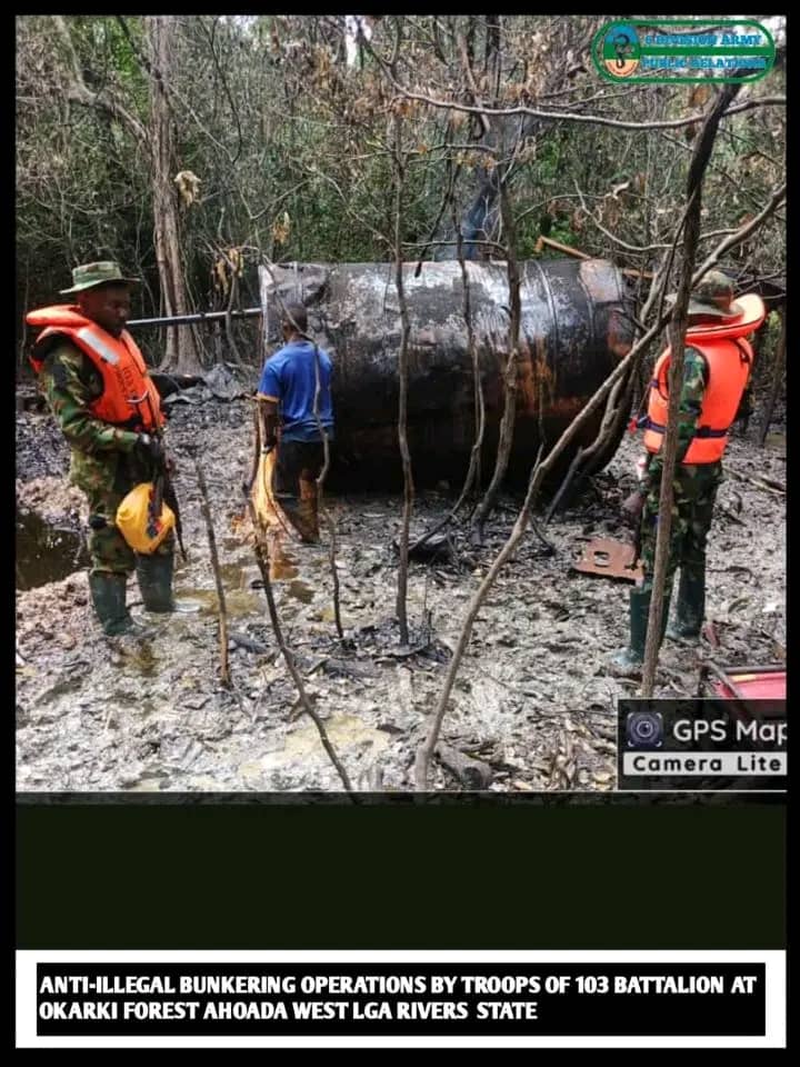 In Rivers State, troops recorded major successes during multiple raids in Okrika, where two wooden boats were intercepted while loading Premium Motor Spirit (PMS) from a vessel offloading at a jetty.