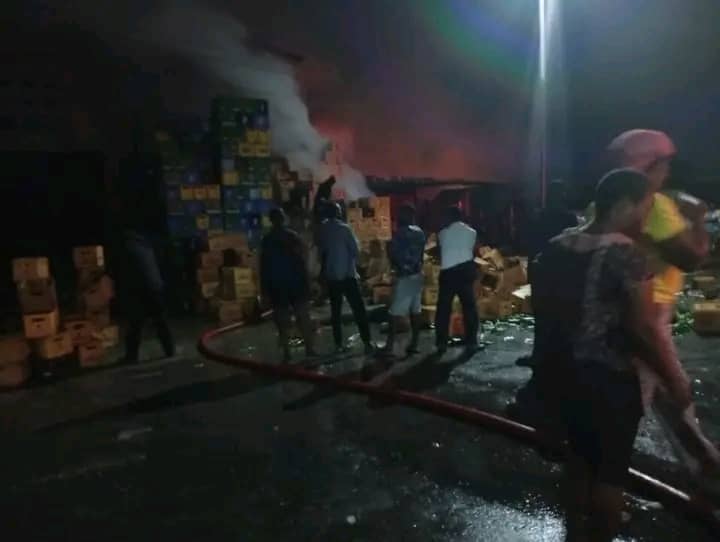 Photos obtained online by our correspondent shows that the fire was still burning, affecting several rooms and shops within a large compound.