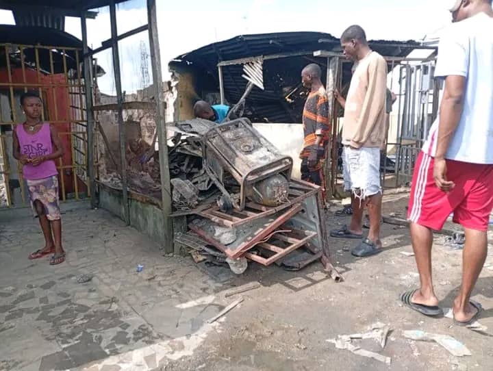 PICTORIAL: Fire Razes Shops, Building in Rivers