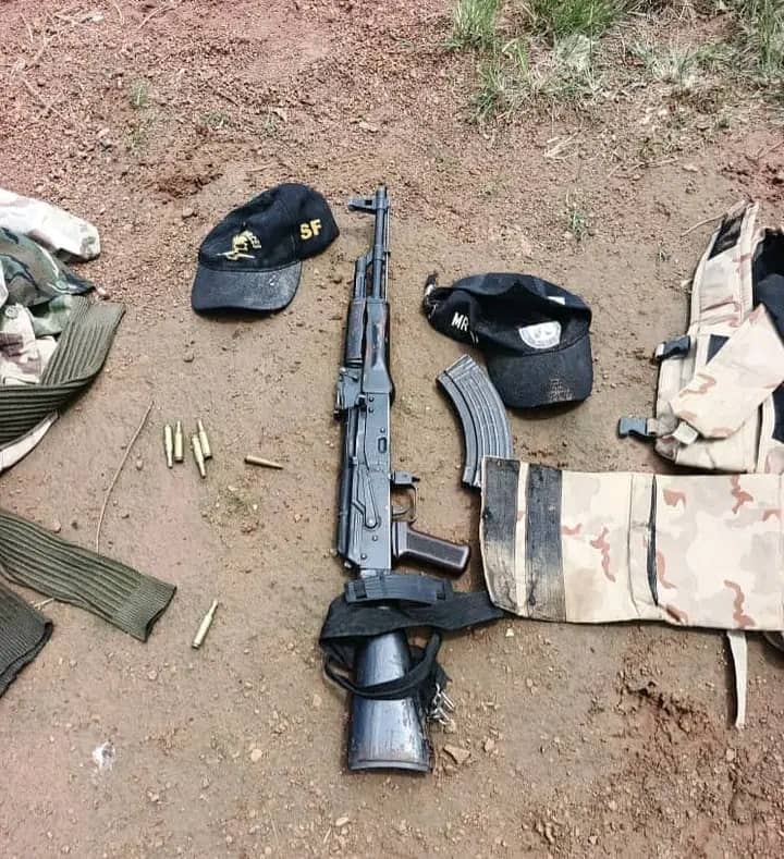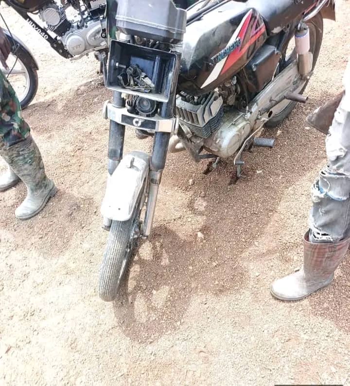During the clearance mission, troops engaged the terrorists in a firefight at Badekoshi, forcing them to flee. A follow-up search led to the recovery of an AK-47 rifle, ammunition, military uniforms, two fragmental jackets, and a Jincheng motorcycle suspected to have been stolen in an earlier attack.