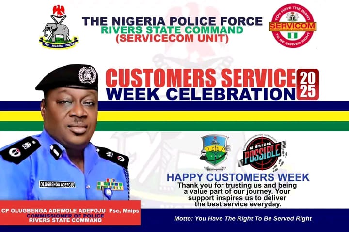 The Rivers State Police Command has joined institutions around the world in commemorating the 2025 Customer Service Week, emphasizing professionalism, transparency, and people-centered policing across the state.